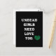 "Undead Girls Need Love Too!" It's so true! Zombie girls need just as much love as human girls do and maybe even more according to this funny zombie design! The phrase is accompanied by a very cute green stitched up zombie heart to signify your new zombie-love.