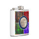 Well made flask, a little better than I had expected. Flask came in clear plastic box which gave it a nice presentation when I took it out of the zazzle packaging. Image is not printed on flask but on sticker. Don't know how this will hold up I haven't used it yet. This would make a Great gift! I plan to purchase more for friends! Cheers. I thought a little brighter than computer. Very crisp, writing wasn't
