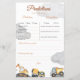"Under Construction" baby shower predictions game card featuring soft grey watercolor clouds. Guests can fill out their fun predictions about the baby, such as birth date, weight, and name, all while enjoying the calming, whimsical design of the clouds. A playful and serene way to add some fun to the baby shower celebration!