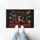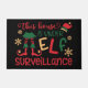 Funny elf surveillance christmas holiday door mat set on a black background. Visit our shop to view a large assortment unique door mats.