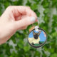 Keychain with detail from a painting of a Siamese cat under the cherry blossoms.