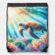 Under the ocean sea turtle drawstring bag
