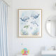 Bring bath time to life with this adorable ocean-themed kids bathroom wall art featuring whales, dolphins, turtles, and coral reefs in soft blue watercolor tones. Perfect for ocean or coastal-inspired kids bathrooms.