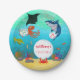 Birthday party paper plate under the sea theme featuring sea animals with ocean water bubbles.