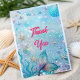 Express your gratitude in style with this mermaid-themed thank you card! Featuring a magical under-the-sea design with shimmering starfish, seashells, and a sparkling mermaid tail, this card is perfect for sending heartfelt thanks after a birthday party, baby shower, or any ocean-inspired celebration. Personalize with your name or message for a unique touch. A charming way to make your guests feel appreciated!