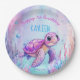 Under the sea cute sea turtle pink purple birthday party monogrammed printed paper plates template happy birthday party plates, sip and sea girl's birthday party personalized table decor