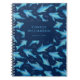 Under the sea, ocean circling fish personalized notebook on dark blue background. Customize with your name/choice of text. Matching items available. Original art from artists own illustrations. Please use the message me button below for help with further customization and special requests. © Zoe Chapman Design