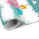 A very cute mermaid gift wrap featuring a pattern of mermaids with pink hair, with pet goldfish framed in teal glitter. This cute wrapping paper would be ideal for a little girl's mermaid birthday party gift, used to decorate the gift table or walls at a party, great for scrapbooking enthusiasts, used for a mermaid baby shower, the options are endless.