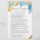 DON'T FORGET TO ADD BRIDE'S NAME AND DATE ON THE BACK. | This Under the Sea Blue and Gold Bridal Shower Game features seahorses, starfishes, shells and coral reefs. For more advanced customization of this design, please click the BLUE DESIGN TOOL BUTTON to change font, size, and color. Matching items are also available.
