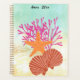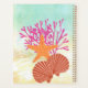 Red-pink coral, an orange sea star, and brown scallop shells against sandy tan and sea blue-green make this planner perfect for remembering to schedule that vacation at the beach!