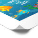 Poster shown with a artful print of some fish under the sea.