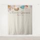 This personalized photo booth backdrop is perfect for under the sea themed quinceanera parties and other beach themed special events with its sand colored background and vibrant seashells border. Easily customize the text on this large wall tapestry with any message you like.