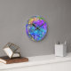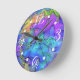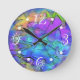An original digital abstract design for a wall clock suggestive of an underwater scene in shades of blue, green, and purple.