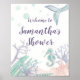 Customizable shower poster/sign with hand-painted ocean watercolors. View more under the sea and ocean-themed party products in our shop below! This design features original artwork by Melissa Rohr, copyright 2020. All rights reserved.