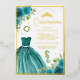 Under the Sea Teal Dress Mermaid Quinceanera Gold Foil Invitation