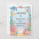 Featuring the same cheerful underwater scene with playful fish and bright corals, this thank you card completes your party story. The beautiful blue background and marine creatures create a coordinated finish to your underwater celebration that guests will love.