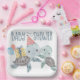 Cute baby shower paper plates featuring watercolor sea turtles, balloons and gifts, perfect for beach and nautical themed celebrations