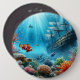 Under the sea, turtle, coral, ship, clown fish button