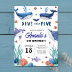 Make a splash and invite your guests to an underwater adventure with this adorable "Dive into Five" birthday invitation! Perfect for celebrating Amanda's 5th birthday, this design is filled with charming watercolor illustrations of friendly whales, smiling sharks, and other sea life like seashells and starfish. The whimsical ocean theme and playful typography create a fun and inviting atmosphere for a fintastic celebration. All the party details are fully customizable to make your little one's big day truly special!