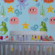Dive into an enchanting underwater world with our Under the Sea themed peel and stick wallpaper! This delightful design captures the magic of the ocean, bringing playful sea creatures and vibrant colors to your space. The artwork features a charming and whimsical style. Each sea creature—whether it’s the friendly octopuses with their expressive eyes, the striped fish, or the graceful seahorses—is rendered in a delightful cartoon-like manner. Bold outlines and flat colors create a visually appealing scene that’s both captivating and child-friendly. Soft blues dominate the background, evoking the tranquil depths of the sea. The sea creatures pop with shades of purple, pink, red, yellow, and green. The overall effect is cheerful and inviting, making it perfect for nurseries, playrooms, or any space where imagination takes center stage.