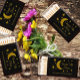 Under the stars, birthday, quinceanera and sweet 16 events. Black night sky background with gold moon and stars