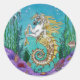Original watercolor painting by Sandra Gale of a fantasy golden sea horse floating above an under sea tropical reef. Great image for kids, teens and anyone who loves sea horses and the ocean. Makes a great bathroom design too!
