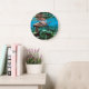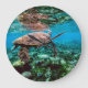 Swim with this magnificent sea turtle! Some species of sea turtles can live 100 years or more. This tropical sea turtle has interesting colors of red, orange, black, and brown on it's body. The turtle swims in shallow turquoise tropical water with a bed of sea coral.