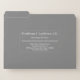 This simple, understated, and traditional file folder design features a gray background, a single-line border with rounded corners, and a decorative row of circle shapes. It could be used by a professional such as an attorney-at-law, barrister at law, barrister or advocate. The name, profession and contact info can be personalized.