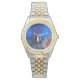 The watch is very nice, the picture is great and the watch looks like quality. The only problem I am having with it is that it is a little too large, and I also can't figure out how to open the clasp. No directions came with it. Very good. The printing is perfect and the watch keeps good time.