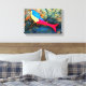 Very impressive product! The canvas is sturdily made. It features a saw tooth hanger on the back, making it easy to "try out" the canvas in several rooms until I found the best location. It attracts good comments from my friends. I love it! The printing is wonderful! Colors are as bright and crisp as they appeared on the website.