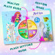 Dive into a magical underwater adventure with this mermaid-themed kids placemat! Featuring a delightful mermaid surrounded by playful underwater creatures, colorful corals, and ocean-inspired visuals, this placemat adds a splash of fun to every meal. Designed to teach children table manners, the double-sided layout includes a place setting guide: one side features a plate, fork, spoon, and cup, while the reverse side adds a knife for advanced learning. The plate also incorporates a healthy plate guide to encourage balanced eating. Personalize this durable placemat with your child’s name to make mealtime even more special! Perfect gift idea for birthday, Christmas, festive celebrations and even graduation!