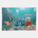 A rich marine scene composed by lots of colorful corals, star fishes, sea shells, blow fishes, and even jelly fishes.