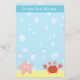 Underwater theme stationery with bubbles background and cute sea animals of pink starfish and red crab. A blue banner to personalise with your message. Current message reads "A note from the sea:" For kids who loves underwater theme or cute sea animals.