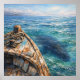 Artwork of an underwater fish swimming near a boat. Looking out over the weathered wooden prow of a classic boat, your eyes are immediately drawn to the sparkling, deep blue sea. But look closer—a massive, mysterious shadow glides quietly just beneath the surface. This seascape places the viewer directly into the composition. The sharply angled prow of a rustic wooden boat, complete with coiled mooring rope, cuts aggressively into the frame. The brilliant turquoise and deep cobalt hues of the water provide a striking visual contrast to the warm, earthy browns and oranges of the boat. Beneath the energetic surface strokes, a large, dark silhouette introduces an element of narrative tension and scale. Perfect for lovers of nautical art and sea life.