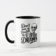 This mug has a skeleton on it saying Don't make me unearth the drama.