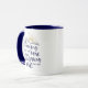 This stylish two-toned scripture mug with navy blue accented rim and handle displays bible verse Psalm 143:8—a comforting reminder that the Lord's tender mercies and steadfast love toward us are renewed every morning. A perfect way to sip while savoring this encouraging truth during your morning devotion time! Available in 11oz and 15oz sizes and with a variety of color accents using the style picker tool.