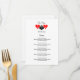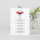 Unforgettable Las Vegas wedding reception menu template. Elegant template for classy typography and hearts logo. Beautiful templates for couples getting married in Vegas. Part of matching set in similar style and color palette. Perfect for gambling / casino theme marriages. Black and white with red color combination. Logo printed on two sides.