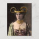 Vintage colorized photograph of a young woman wearing a really unfortunate fashion statement of a hat.