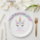 Unicorn First Birthday Party Paper Plate Cute design in faux glitter gold with floral accent. Purple, teal, pink gold and white. Perfect for a magical 1st bday celebration.