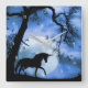A fantasy clock with a unicorn and moon. The unicorn is framed by an oak tree with pretty stars.