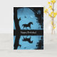 A fantasy birthday card with a unicorn, raven, owl and crescent moon! Framed by a gigantic oak tree and reflected in a pond of water, with stars in the sky. A beautiful mythical, mystical, magical animal packed Happy Birthday card.