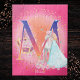 This magical princess design has a fairy tale castle with a princess wearing a flowing blue gown. The princess has a cute unicorn and there are flowers and a treasure box. The pretty background is a bright pink. For a special personalized touch, there's a monogrammed letter in the middle and a place to add a first name or other text at the bottom. This whimsical fantasy design is perfect for your special little girl and makes a great custom birthday, Christmas, or other holiday gift. See full collection for additional letter options.