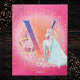 This magical princess design has a fairy tale castle with a princess wearing a flowing blue gown. The princess has a cute unicorn and there are flowers and a treasure box. The pretty background is a bright pink. For a special personalized touch, there's a monogrammed letter in the middle and a place to add a first name or other text at the bottom. This whimsical fantasy design is perfect for your special little girl and makes a great custom birthday, Christmas, or other holiday gift. See full collection for additional letter options.