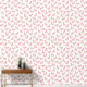 This original wallpaper design includes a repeating pattern of cute pink unicorns and light blue stars on white. It would look really cute in a nursery or girl's bedroom.