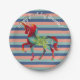 Stripes and colorful unicorn custom text, birthday paper plates.