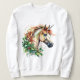 A beautiful unicorn is framed with a partial wreath of holly with red berries on this lovely, magical holiday sweatshirt. Perfect for anyone who loves unicorns, fantasy, and magic.