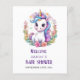Unicorn baby shower invitation. Invite family and friends with this personalized party invitation. It features a cute unicorn. Personalize this unicorn party invitation by adding a name, date, time, location and more. This baby shower invitation is perfect for a baby shower. Matching items available.