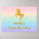 Unicorn party photo backdrop with cute hawaiian icons, personalized with the greetings, your child's name & age,