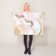 Unicorn blanket with beautiful pastel unicorn on a pastel pink gold purple and blue rainbow cloud background. this pretty unicorn blanket is easily customized by simply adding the text of your choice in the font style you prefer.
