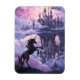 Unicorn Castle art prints, posters, accessories, and gifts features a original fantasy painting by Traci Van Wagoner of a black unicorn rearing on a grassy hill overlooking a white castle high in the sky surrounded by colorful pink and purple clouds. This beautiful and whimsical castle in the clouds fantasy art is perfect for fantasy lovers, castle lovers, unicorn lovers, magic lovers, and everyone who loves the fantastical.